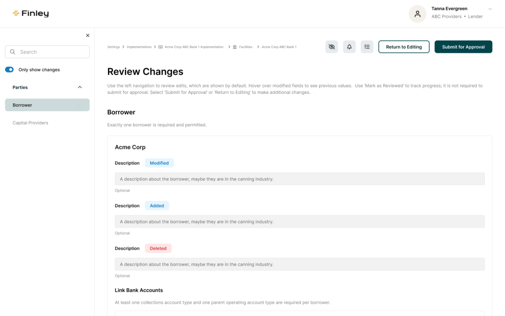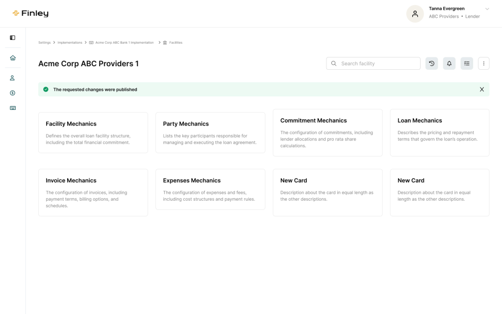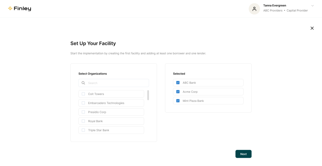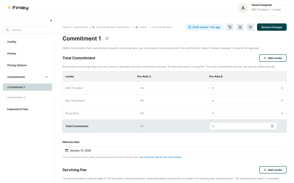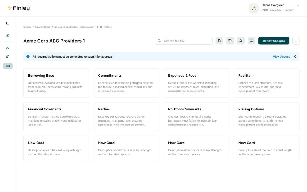 Users choose the modules required for their deal, allowing each facility to include only the components that apply to its structure.